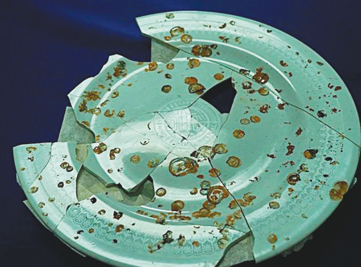 致远舰上发现的餐具残片。(本文图片为受访者提供)
