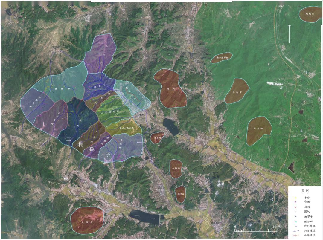 调查明确了红石砬子抗日根据地遗址的核心与外围分布情况(图二),核心区为红石砬子山脉约32平公里的十五道沟谷组成,外围则为河谷交通要道沿线的山区密营,如大炕山、拐子炕、庙沟、萝卜地等。这些外围密营为核心区提供军事警戒,做为前哨战场,共同保卫红石砬子抗日根据地核心遗址免受日伪侵袭。