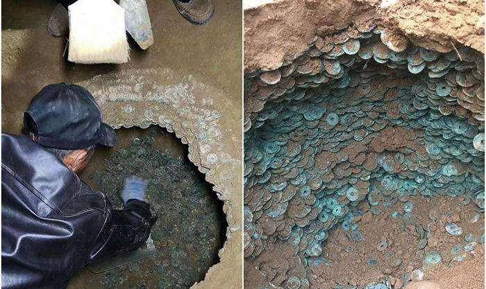 这个发现发生在黄石市的西塞山脚下,距离长江仅有200米的地方。当时,黄石市正在进行水利建设,工作人员在山脚下挖土,结果一不小心挖到了一个满是铜钱的钱窖。那是1967年11月15日,民工们挖了不到一米深,突然就出现了一个巨大的窖藏,满是铜钱,简直让人无法相信自己的眼睛。