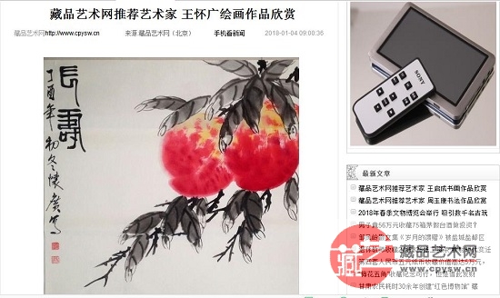 藏品艺术网《2018百佳艺术家》专栏第1期刊发王怀广先生宣传文章截图