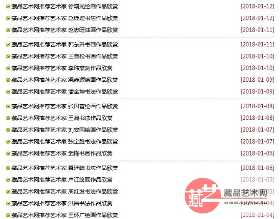 藏品艺术网《2018百佳艺术家》专栏2018年1月4日起陆续刊发推荐艺术家文章