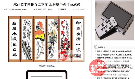 藏品艺术网《2018百佳艺术家》专栏第100期刊发王启成先生宣传文章截图