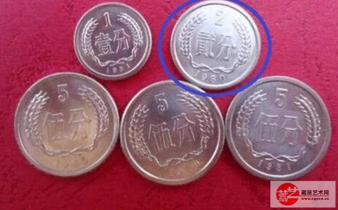 我们先来普及下硬币五大天王相关知识,五大天王”是指1981年的1分硬币,1980年的2分硬币,1979年、1980年、1981年的5分硬币,现在一整套的五大天王收藏价值达到五千元,绝对的硬币之王。笔者今天说的就是其中一枚,1980年2分币。
