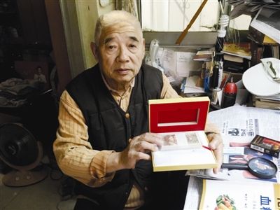 昨日,李大爷向记者展示购买的一堆纪念品。