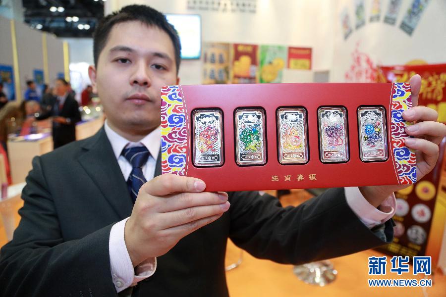 11月7日,工作人员在展示猴年生肖银章套装。 当日,为期3天的2015北京国际钱币博览会在北京国家会议中心举行。我国及来自美国、德国、澳大利亚等16个国家和地区的250余家国内外展商参展,展会期间还举办熊猫金银币品鉴会、收藏文化论坛、最受群众喜爱的2014年贵金属纪念币评选、钱币精品拍卖会等丰富多彩的钱币文化交流活动。新华网记者陈健男摄