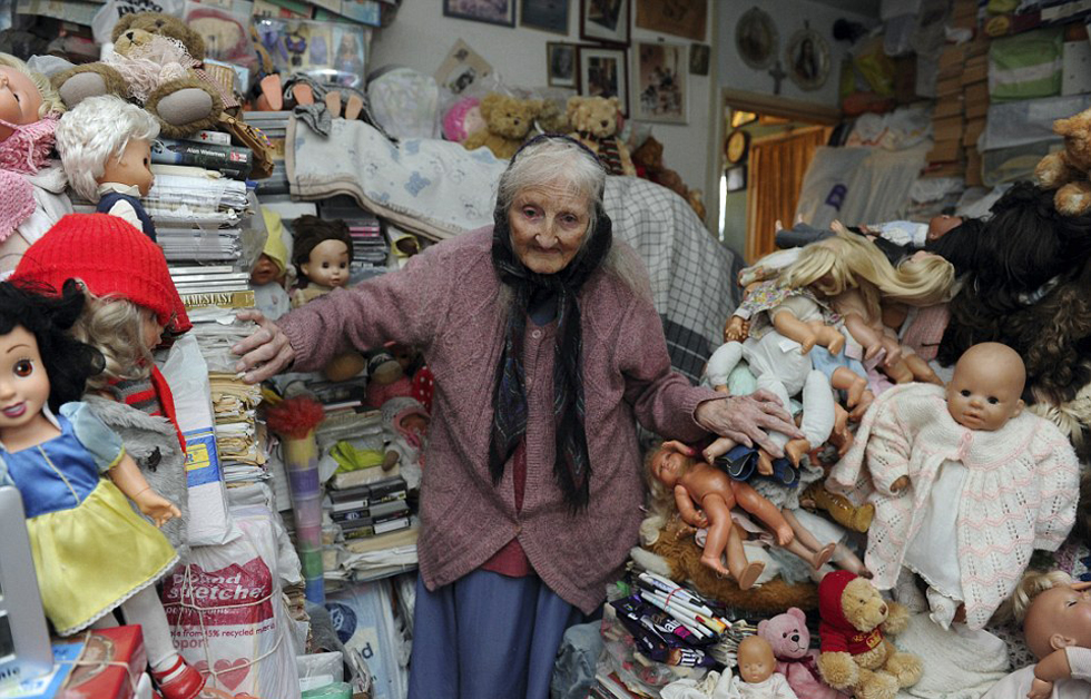 国际在线专稿:据英国《每日邮报》11月18日报道,英国柴郡诺斯威奇市(Northwich)87岁老妇梅·阿普尔顿(May Appleton)已经在其住所生活了61年,现在却面临着被赶出家门的命运。因为当地房屋协会的官员警告称,她收集的大量娃娃、玩具、签名、照片以及纪念品存在火灾隐患。