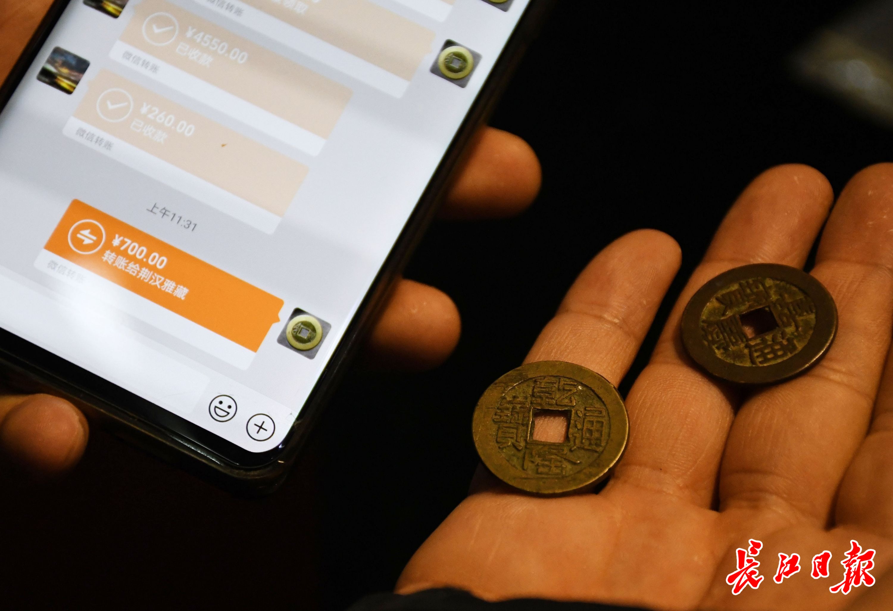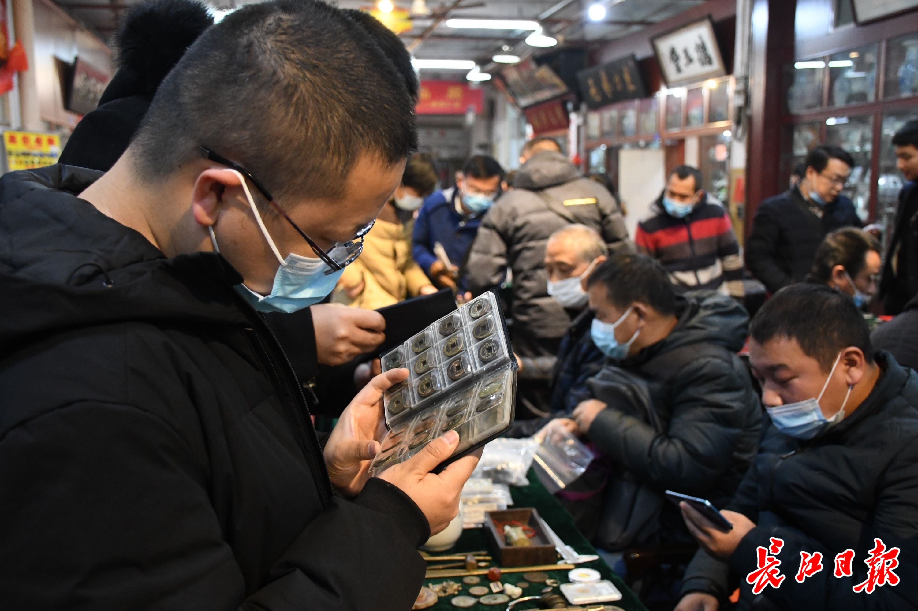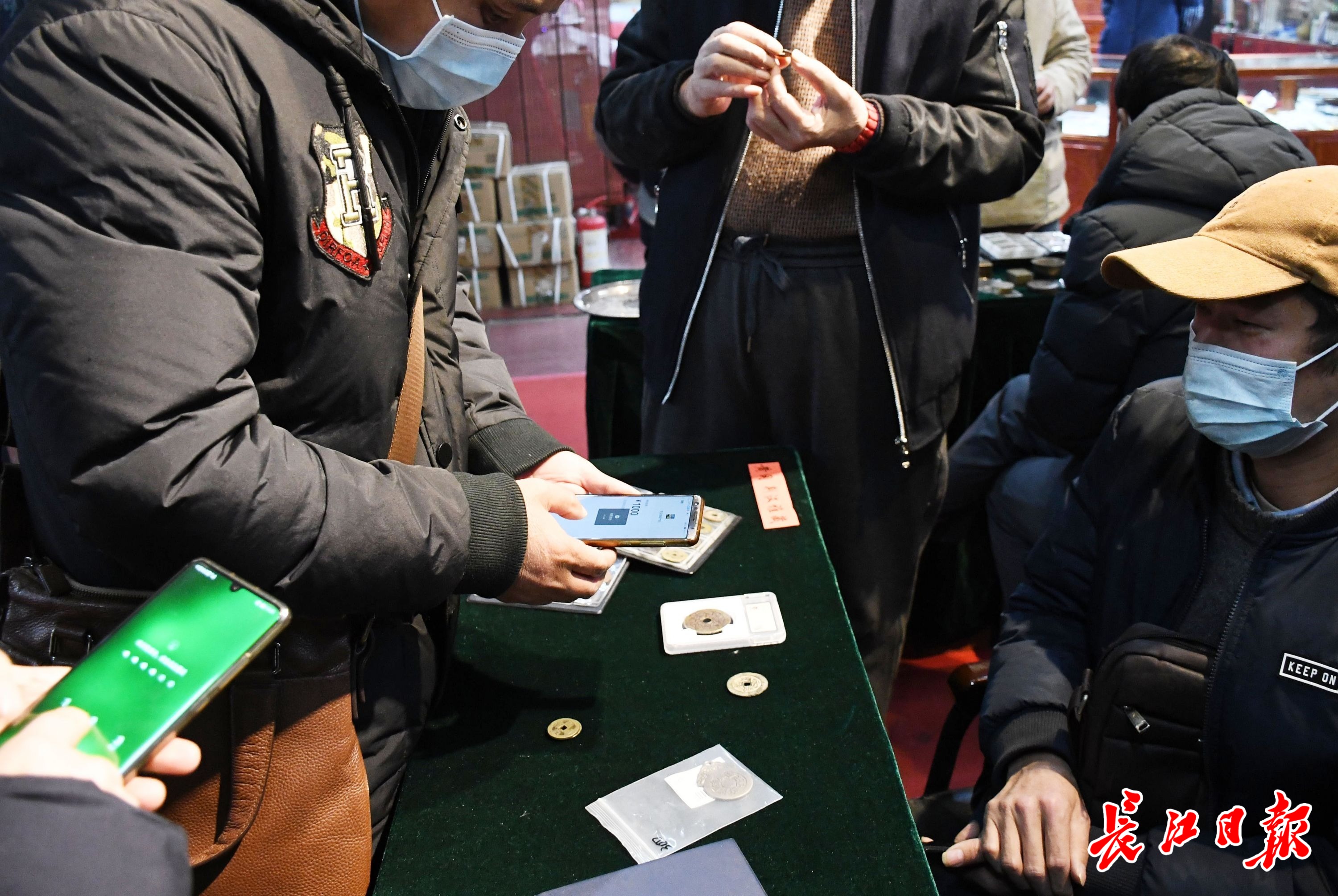 长江网12月5日讯 5日,在武汉崇仁路收藏品市场,众多藏友参加市场举办的钱币交流会。有宜昌等地的藏友专程来到这里,与各地藏友交流钱币藏品。藏友们相互用手机支付,进行古钱币藏品交易,让人感叹时代变化下货币交易方式的变迁。(记者詹松 摄影报道)