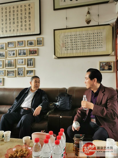 邵积平将军(右)与姚振普将军(左)在藏品艺术网总编辑、将士丰采书画院负责人王景轩位于村里的艺术小院“景轩斋”中交谈