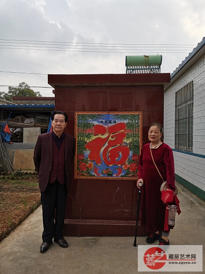 邵积平将军(左)与夫人王慧智(右)在藏品艺术网总编辑、将士丰采书画院负责人王景轩位于村里的艺术小院留影