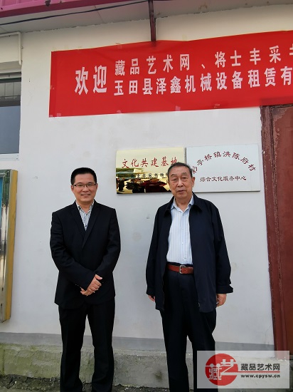 2021年10月2日上午,藏品艺术网、将士丰采书画院“文化共建基地”揭牌仪式暨送书画慰问活动在河北省唐山市玉田县彩亭桥镇老区村洪陈府村成功举办,原解放军后勤指挥学院常务副院长、正军职少将邵积平,原黑龙江省军区副政委姚振普少将等嘉宾和洪陈府村乡亲共同为“文化共建基地”揭牌。