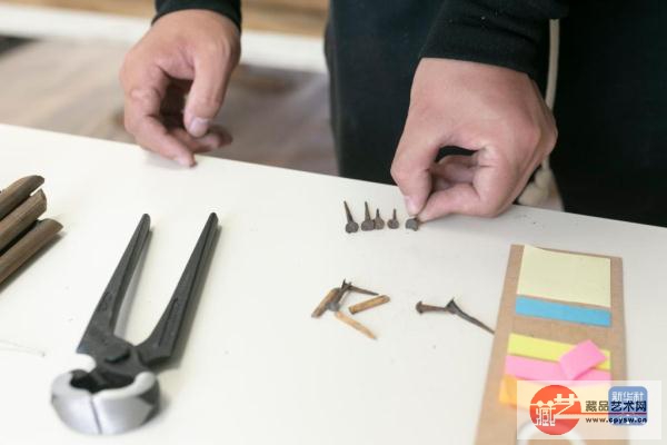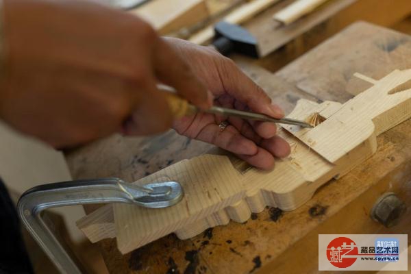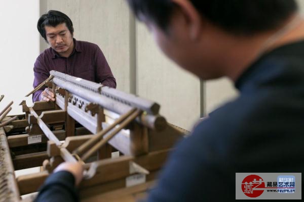 10月10日,在斯洛文尼亚卢布尔雅那的民族志博物馆,故宫博物院专家鲍杰制作大门模型缺失的部件。