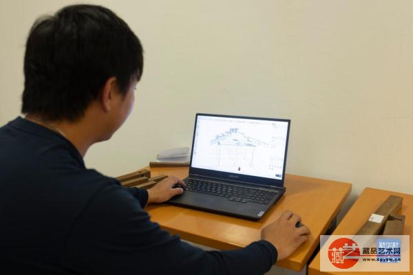 10月10日,在斯洛文尼亚卢布尔雅那的民族志博物馆,故宫博物院专家史孙明根据古建筑大门模型建立3D模型。