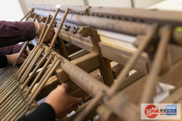 10月16日,在斯洛文尼亚卢布尔雅那的民族志博物馆,故宫博物院专家修复中国古建筑木质大门模型。