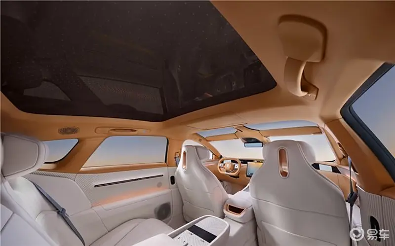 针对内饰的部分,阿维塔012限量联名版也做了大量的专属设计,包括座椅头枕上的专属辉耀联名Logo,全颗粒Nappa植鞣真皮座椅,Kim Jones典藏风格内饰,灵感星辉天幕等等,都给整体内饰氛围增添更多豪华气质。不仅如此,它还配备了后舱悬浮天幕屏,更是从配置上突显出档次感。