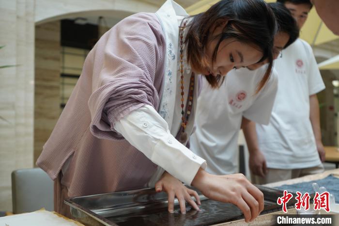 15日,复旦大学传习所导师携弟子展示古籍装帧、团扇绘画、鸟虫篆刻、纸浆补书、碑刻传拓等技艺。(复旦大学供图)