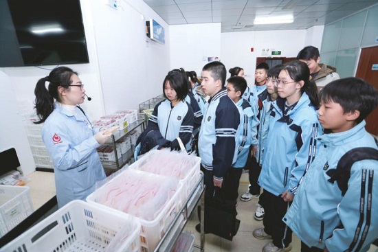 南宁市三十五中师生参观采供血业务科室,了解“一袋血的爱心之旅”。(南宁中心血站供图)