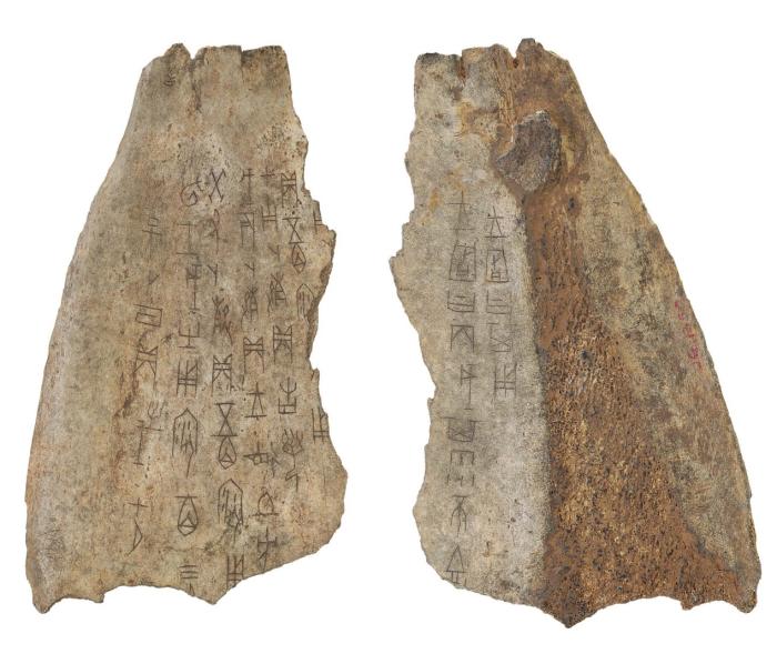 天津博物馆书画研究部策展人张夏告诉记者:“甲骨文除了卜辞以外,还有记事刻辞等,卜辞占了绝大部分。这次送展的翌庚寅帚(婦)好 (娩)卜骨是天博的明星甲骨。它是占卜商王的第一任王后妇好生孩子的甲骨。还有商王武丁另一位王后妇妌有关的甲骨。这些甲骨都将回到河南展出,非常有意义。其中,彗乎小多馬羌臣卜骨记载了商王武丁的官员的名称,在全世界仅有一片。这片甲骨上记载的官名,是负责管理多馬羌这个族群的官员。这次也是120多年来,从甲骨发现至今,流散在各地的甲骨首次回乡探亲。”