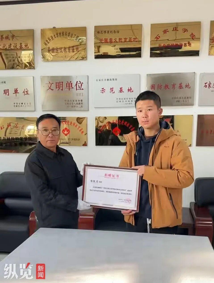 徐凯睿向石家庄梅花惨案纪念馆捐赠日军书信仪式现场。(受访者供图)19日下午,记者也将这一消息告诉了捐赠者徐凯睿。得知信件经专家鉴定确实出自日军士兵之手,且被河北革命军事馆收藏,徐凯睿难掩激动之情。他说:“这算是圆了我的初心。现在日方有些声音不承认侵略中国,这些日军士兵的家书就是最直接的佐证,能让大家看到 1937年前后日军侵华的真实情况。”