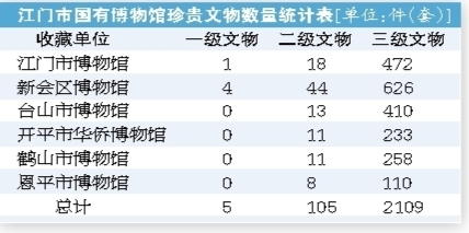 据悉,本次普查江门市在国家文物信息登录系统共登记收藏单位11家,按单位类型分析,其中有博物馆6家、图书馆2家、美术馆1家、其他类型1家。