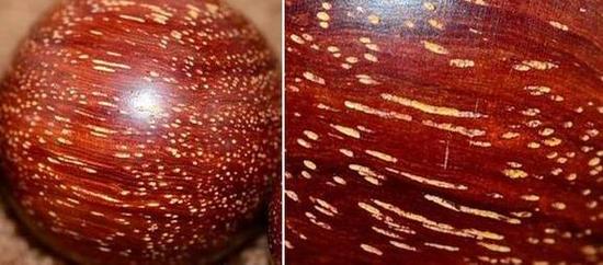 时至今日,假金星的印度小叶紫檀仍然是最好卖的假货之一,而其制作工艺也是越来越有进步。大家务必记住,真正的金星小叶紫檀的金星是有凸出感,胶装感的,而非上图所示的这种凹陷感,粉状感。