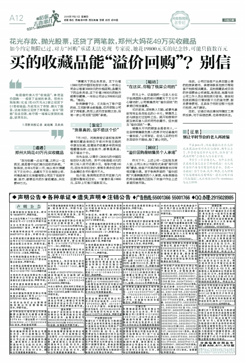 原标题:郑州大妈花49万元买收藏品难兑现 工商部门介入