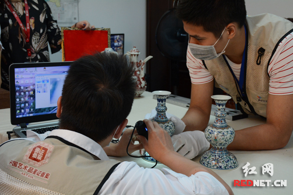 雅昌艺术网鉴证备案中心工作人员正在为藏品拍照备案。