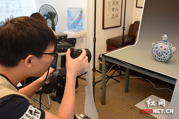 在博晖文化收藏馆内,雅昌艺术网鉴证备案中心工作人员正在对一批青花瓷进行拍照、鉴定等鉴证备案。中国艺术品鉴证备案服务内容包括艺术品征集、鉴定、技术备案、认证、颁发证书、版权登记备案,通过对艺术品鉴定、科学检测和数据备案后,获得艺术品唯一的身份信息,实现艺术品DNA锁定。