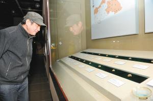 今年2月9日,18年前献出这批秦封泥的阎小平先生来到展览现场参观 (资料图片) 记者 张宇明 摄