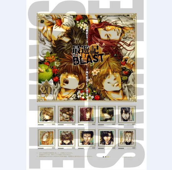 《最游记》是日本漫画家峰仓和也所著的系列漫画及其派生作品的总称,也是该系列漫画的第一作名称。为了纪念动画诞生20周年,官方不仅推出了电视动画《最游记RELOAD BLAST》,还将打算发售纪念邮票,我们就一起来看看吧。 《最游记》系列20周年纪念邮票由原作者峰仓和也亲自设计,包含了10枚邮票的套装售价为2000日元(约合117元人民币)。东京中央邮局旗下的12家店铺将从11月2日发售这套邮票,而网上邮局也将从11月5日开始贩卖。对这些邮票感兴趣的网友们可以关注一下。 《最游记》本作套用了中国四大名著之一《西游记》的人物名,所展开的剧情与《西游记》稍有关联的奇幻冒险系列漫画。不过是与《西游记》没有任何关联的幻想冒险故事。作品凭借唯美的画风、意味深远但不失笑料的剧情吸引了很多女性读者的追捧。连载至今,《最游记》系列已经推出了三部主线篇:《最游记》《最游记RELOAD》《最游记RELOAD BLAST》和两部外线篇:《最游记外传》《最游记异闻》。在超过20年的连载过程中,《最游记》系列派生出了包括广播剧、角色歌、OVA、电视动画、剧场版动画、小说、游戏等大量衍生作品。 (来源:腾讯动漫)