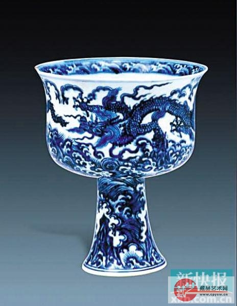 青花海水龙纹高足碗