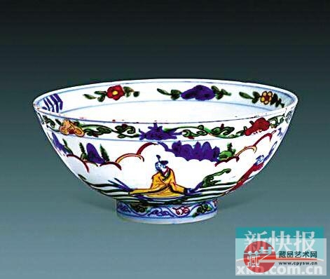 五彩仙人渡海图碗
