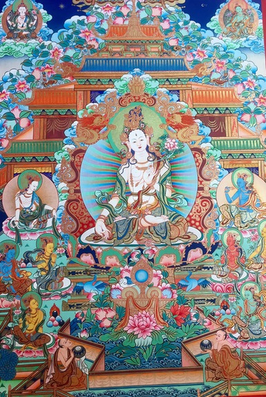但是这里我特别想强调的是:无论尼泊尔唐卡也好,藏族唐卡也好,我认为是没有好坏之分的。区分它们的是什么呢?其实真正的分别是画唐卡的人、他们的发心,我们在寺院里看到绘制的唐卡主要出于宗教信仰,目的是悬挂、礼拜。而也有一些唐卡画,是一些具有绘画技艺的人,出于纯美术的目的,或者是销售的目的来绘制的,由此画唐卡的目的是不同的。