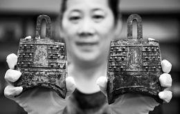 记者在海昏侯墓出土文物特展上看到,成套出土的编钟、编磬、琴、瑟、排箫、伎乐俑;数以千计的竹简、木牍以及有文字的漆笥、耳杯;惟妙惟肖的青铜雁鱼灯、青铜火锅;镶嵌着玛瑙、绿松石和宝石的青铜镜等等。专家介绍,这都是汉代考古文物珍品,不少是首次发现。