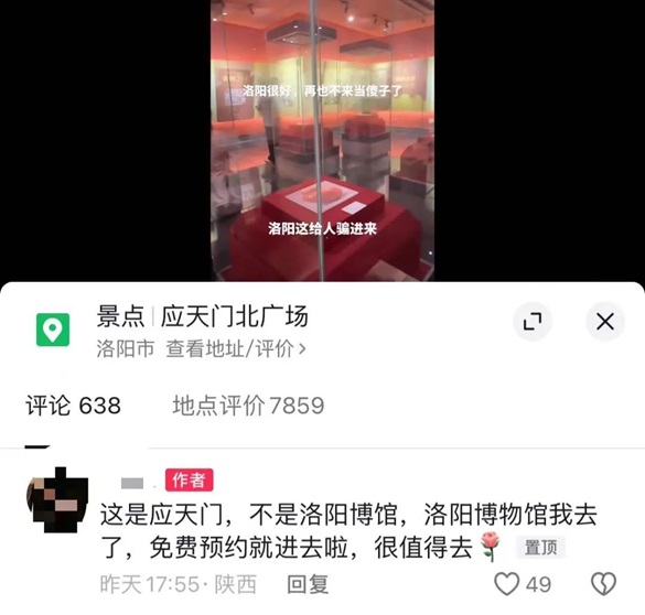 10月8日,一段由游客上传的视频在网络上引起热议。视频中,游客称河南洛阳隋唐洛阳城应天门遗址博物馆存在以照片代替实物展览的情况。该游客表示,自己花费60元购票进入博物馆后,发现部分展品为玻璃框架内的文物图片。游客还在评论区提醒公众不要将此博物馆与洛阳博物馆混淆。 用照片代替实物展览?博物馆回应 针对此事,10月9日,记者致电洛阳应天门遗址博物馆进行核实。博物馆工作人员表示已知悉此事,并解释称博物馆入馆的确需要购买门票,馆内并非所有展品均为照片,而是部分展馆采用了视图展示方式。 工作人员进一步说明,博物馆一直以来就是图片展示,没有文物存放,如需观看实物文物,游客可前往洛阳博物馆。 据工作人员介绍,洛阳应天门遗址博物馆共两层,设有四个展馆,其中仅有一个展馆部分采用展品视图展示,一层主要展示壁画和遗址。