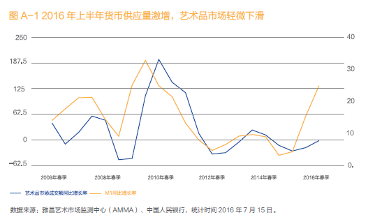 雅昌艺术市场监测中心(AMMA)顾问、中央美术学院特聘教授、资深艺术市场专家龚继遂表示:2016年上半年整体宏观经济没有大的流动性过剩,一线城市虽然大的限购政策依然存在,房地产价格却回暖抬升;制造业和股市依旧沉闷低迷,没有暴涨形成的盈余,总体来说艺术品市场支持资金总量依旧维持去年的趋势。