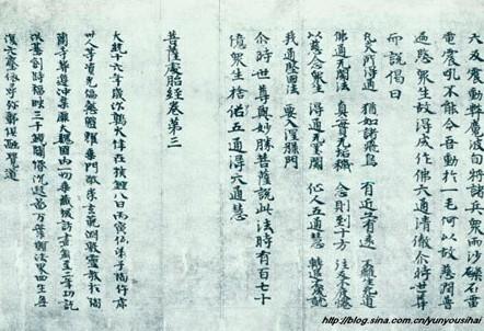 这卷经书来头极大,它是人世间手手相传的最古老的经卷,而且可能也是世上仅存的西魏墨迹,价值无可估量。此卷为西魏大统十六年陶仵虎写造,字大 如豆,书法为北碑一派,笔意自如,全无石刻方拙之态,其超凡入圣之处,实有不可思议之妙。这个宝贝我见过一次,是在京都国立博物馆的敦煌国际大展上,当时 俄罗斯将其掠夺的敦煌写经一举展出,但是都是考古所出,多有残破。日方展出了几件唐朝时候流入日本的写经,精美至极,特别是这份菩萨处胎经,完全就是压场 的宝物,精美的纸张,稳健的笔意,一看就是难得一见的神品。