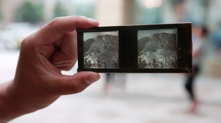 本来,找到这台不知名的3D相机并不算稀罕,“这不是一台量产相机,在网上都没有搜到它的资料,这样的相机可能产自某个作坊,说不上名贵但凝聚了一些工匠精神。”拿到手后,肖熠发现了真正的惊喜,“里面居然保留了一张玻璃照片,这个相机本身不是特别难找,但相机里的干板很了不起,在玻璃涂上感光材料作为底片,这是胶片出现之前的一种早期摄影技术。”