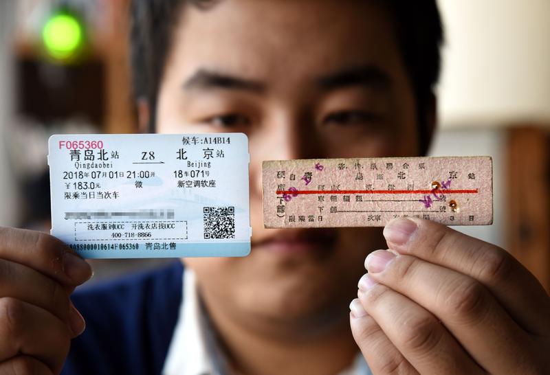 24岁的青岛小伙陈天豪是个火车迷,从小他就喜欢收集火车票、机车模型、铁路指示牌等,而他收藏最多的是各式各样的火车票。从最早的硬板票到如今的磁卡车票,陈天豪已经收藏了逾千张、时间跨度长达数十年的火车票。 ↑1月25日,陈天豪展示一张1979年的火车票。新华社记者 李紫恒 摄↑ 1月25日,陈天豪在对比1962年(右)和2018年的火车票。新华社记者 李紫恒 摄↑ 1月25日,陈天豪在介绍他收藏的老火车票,其中也包括了当年春运的票根。新华社记者 李紫恒 摄↑ 1月25日,陈天豪在介绍他收藏的一些老车次指示牌。他说,现在这些指示牌已经“退役”了,高铁却让城市之间的距离“变近”了。新华社记者 李紫恒 摄↑ 1月25日,陈天豪在介绍一张1978年的火车代用票。新华社记者 李紫恒 摄↑ 陈天豪介绍他收藏的列车模型(1月25日摄)。新华社记者 李紫恒 摄