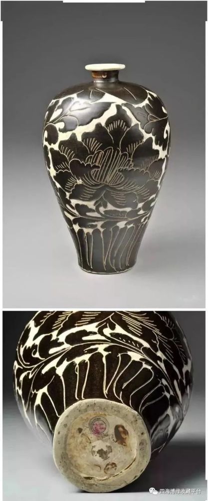 北宋磁州窑黑釉刻花牡丹纹梅瓶