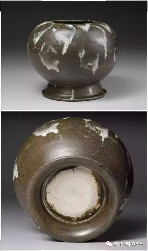 唐黑釉白斑罐