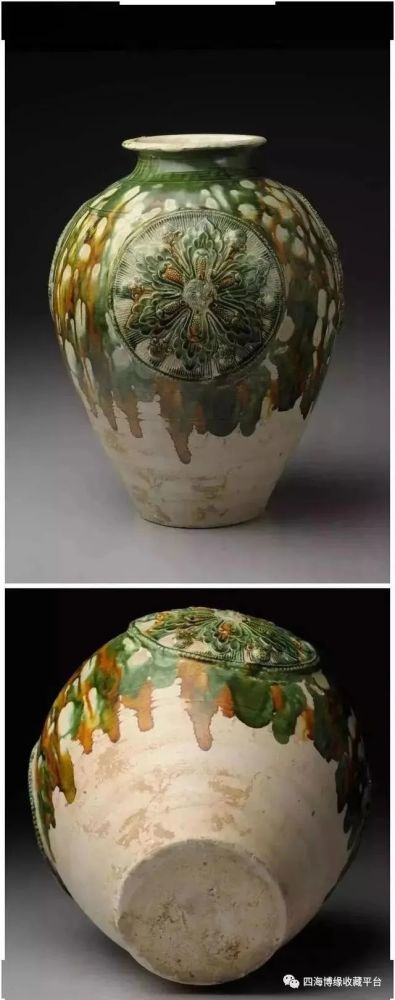 唐三彩贴花宝相花纹罐
