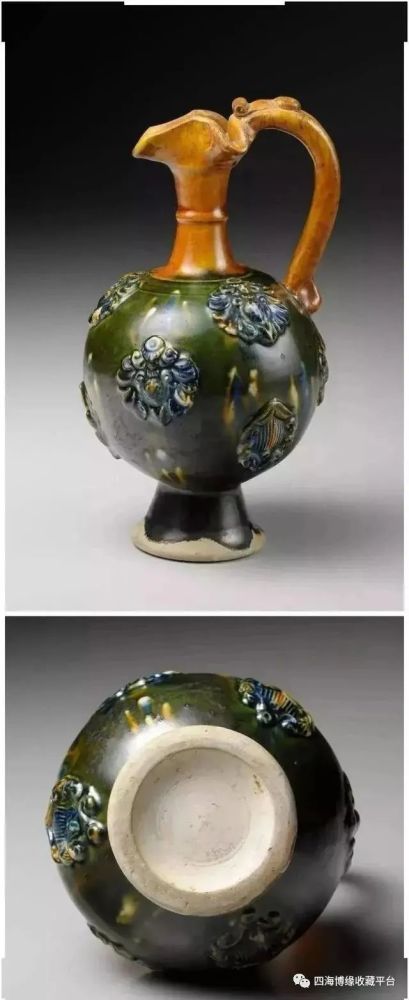 唐三彩贴花宝相花纹执壶