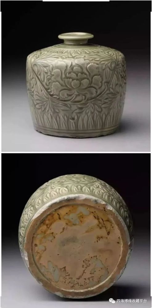 北宋耀州窑青瓷刻花牡丹卷草纹瓶