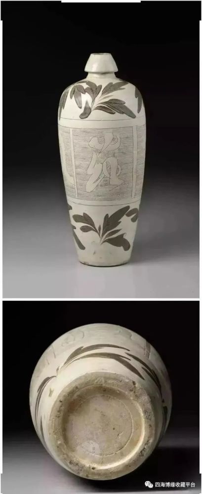 金磁州窑白釉黑花“风花雪月”梅瓶