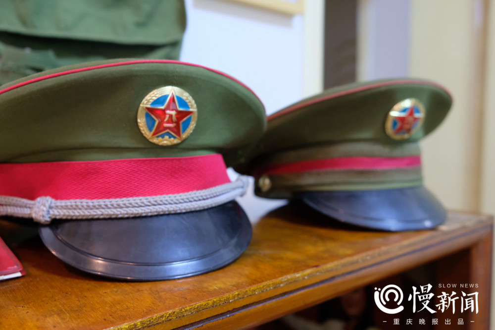 ▲刘太忠的儿子同为军人 父子二人的军帽被刘太忠并列放在柜上