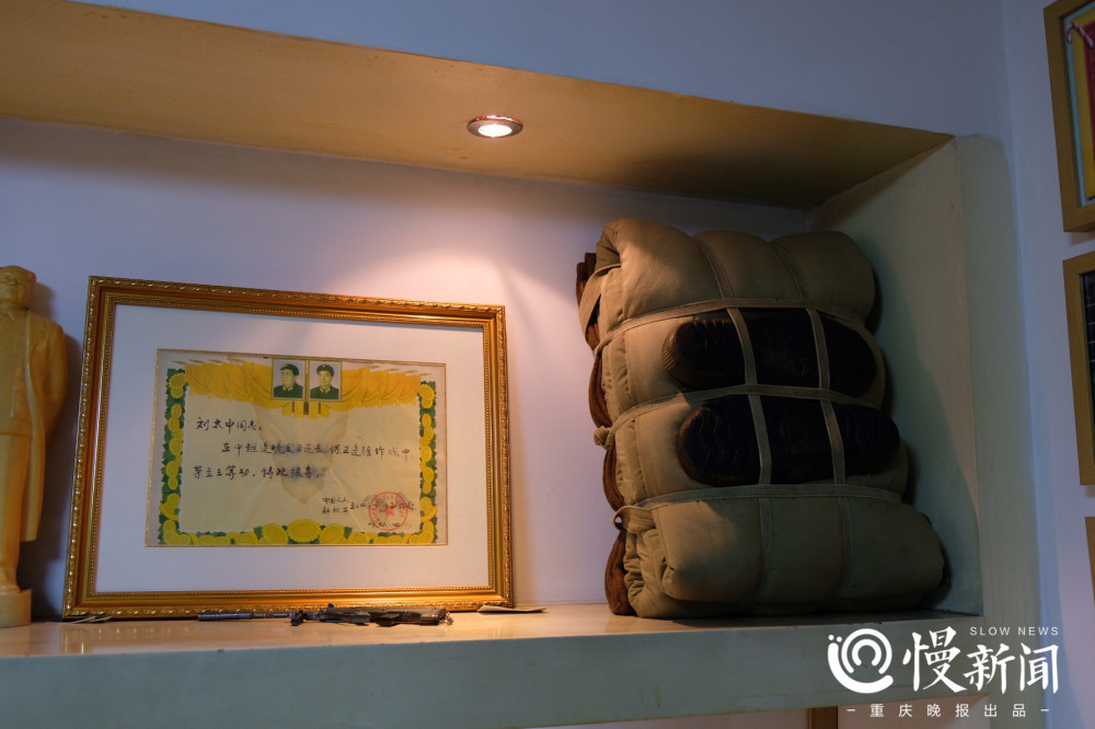 今年70岁,刘太忠1969年入伍。参军第二年,他就凭借在部队优异的表现成为了一名共产党员。“肯定光荣撒,现在都能回想起当初得知入党,激动了好多天的场景。”老刘说,他父母早亡,吃百家饭长大。13岁去生产队上班,18岁进入部队前,他连字都不会认。