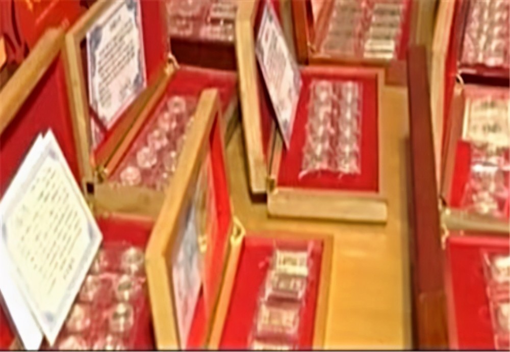 河南郑州有位姓周的老太太71岁了,周老太有个特别高雅的爱好,那就是收藏纪念金币、纪念像章等,老人收藏了一套又一套,没事的时候就把它们一盒一盒的摆出来观赏。周老太家有个小书房,小书房里几乎连下脚的地都没有了,各种盒子、箱子塞得满满当当,这些东西全都是周老太太收藏的。