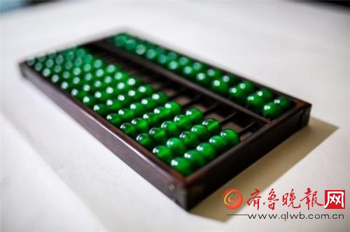 齐同民先生收藏的清光绪御赐杏和堂翡翠算盘。