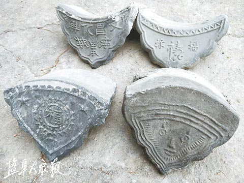 在方正心收藏的砖瓦中,不少刻有“盐城县”“阳山”“阜”等字样,这些砖上的文字是何意思,引起方正心探究的兴趣。他查阅大量的资料发现,在明朝为了防止倭寇侵犯建城墙,就已经采取“实名制”。城墙砖由各地生产,必须有名字刻在城墙砖上,哪块砖有问题,就找那里的负责人算账。“城墙砖上刻有‘阳山’,可能就表示这块砖是当时的阳山生产的。”