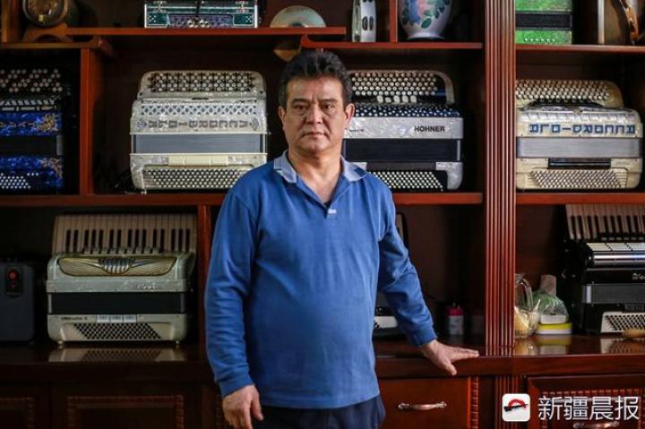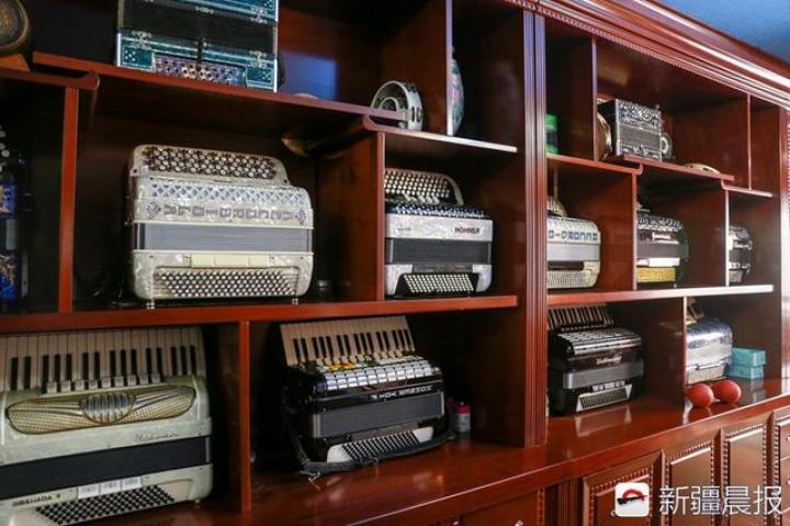 虽然阿克拜尔的部分手风琴都很贵,但在他心里,最宝贵的是父亲和大哥用过的手风琴,它们分别被锁在柜子两头的最高处。“父亲和大哥都去世多年了,这两架手风琴他们拉了几十年,里面有他们的气息。”他说,他经常会把父亲和大哥的手风琴拿下来边拉边回忆与他们曾经的点点滴滴,常常湿润眼眶。